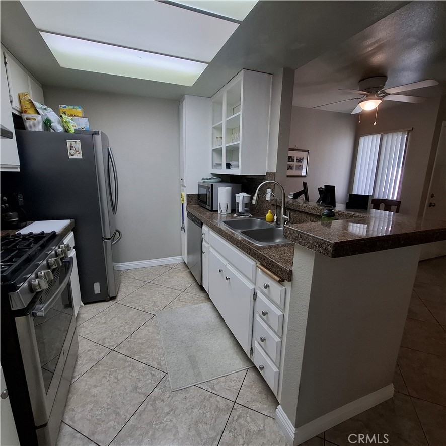 Updated Affordable Turnkey Corner Unit Condo in a Gated Community – Move-In Ready! Seize this rare opportunity to own a beautifully updated 2-bedroom, 2-bath upper corner-unit condo that blends modern comfort with unbeatable convenience! Nestled in a secure, gated community, this second-floor gem offers the perfect balance of tranquility and proximity to vibrant amenities. Step inside and be captivated by the spacious, light-filled family room that flows seamlessly into the dining area, ideal for entertaining or cozy nights in.The beautifully updated kitchen boasting sleek granite countertops, a stylish breakfast bar, and stainless steel appliances, including a stove, dishwasher, and refrigerator. Start your mornings with a breathtaking sunrise on your private balcony, perfect for sipping coffee or unwinding after a long day. The primary suite is a true retreat, featuring soaring vaulted ceilings and a private bath, thoughtfully separated from the equally spacious second bedroom with its own vaulted ceiling and adjacent full guest bath. Freshly updated with a brand-new heat and A/C compressor, this home is ready for you to move in and start living your best life! Enjoy resort-style living just steps from the sparkling pool, relaxing spa, and vibrant recreation room. Additional highlights include in-unit laundry with brand new washer/dryer included, a mix of elegant tile and carpet flooring, a private one-car garage with remote roll-up door, and an extra dedicated parking space for ultimate convenience. The HOA covers select utilities and hazard insurance, keeping your costs low and your lifestyle carefree. Perfectly situated near parks, schools, shopping, outlet centers, dining, serene lake access, and easy freeway connections, this condo offers the best of both worlds: a peaceful retreat with everything you need just minutes away. Don’t miss your chance to own this move-in-ready affordable gem – schedule a tour today and make it yours!