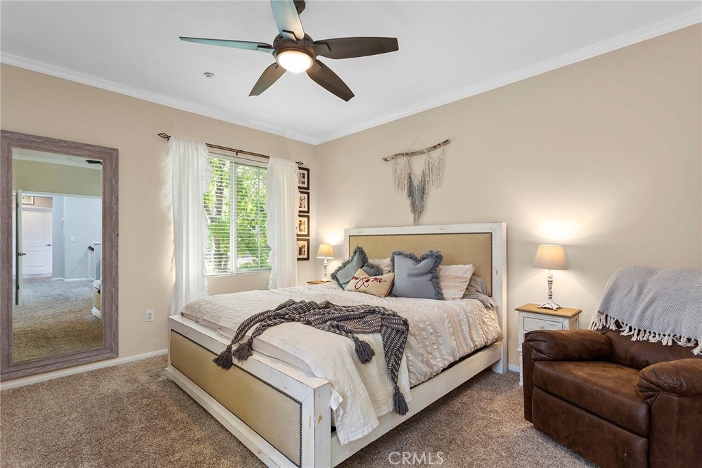Welcome to Brookview Terrace the gated condominium complex located inside the master planned community of Canyon Hills. This hard to find 3 bedroom condo is immaculate and upgraded perfectly for the modern buyer. The prime corner unit location provides tons of windows with natural light and is right next to a playground, perfect for kids! Downstairs has an open concept layout with tile flooring throughout and gas fireplace complete with shiplap mantle detail. The kitchen features granite counter tops, ample cabinet space, and bar seating, great for entertaining. The Downstairs powder room was recently updated with shiplap focal point wall and new vanity sink. Upstairs master suite is spacious with ensuite master bathroom complete with duel sink vanity, stand up shower, deep soaking tub, and large walk in closet. Additional 2 bedrooms are adjacent to the shared hallway bathroom, built in hallway office space, and highly sot after upstairs laundry room. Brookview Terrace offers tons of amenities within the gated facility including private pool, spa, BBQ area, stunning clubhouse room with kitchen that you can reserve for events, full gym with indoor area for kids to play during your workout, plus the added security of being gated. Being in-between the 15 and 215 freeway makes this a great location for commuters along with the convenience of being walking distance to the grocery store, many restaurants, and amenities!