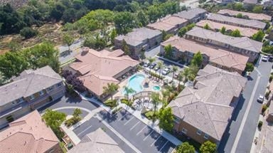 Carefree elegance awaits you in this coveted end unit w/ 2-car attached garage. Presented in a neutral palette with designer accents. Tall ceilings and gorgeous hardwood floors show off this open concept designed for entertaining. Cozy family room with glowing fireplace and dining area. Stylishly upgraded kitchen with breakfast bar glistening with stainless steel appliances, granite countertops and rich cabinets. Charming powder room. Upstairs has a built-in office with bold accent wall. The laundry room painted in stripes makes laundry fun! Also upstairs are three decorated bedrooms with ceiling fans and soft carpet for comfort. Two bedrooms with peaceful views share a well-appointed bathroom. The master is enhanced with crown molding. The bath is complete with ceramic tile, romantic roman tub, separate shower, dual sinks, and walk-in closet. Stroll the pretty tree-lined sidewalks. Indulge in the resort amenities including community pool, spa, onsite gym, sauna and steam room. Outdoor BBQ/kichen area with large fireplace and picnic tables. Clubhouse with kitchen for special events. Canyon Hills is among top 50 top master-planned communities in the US. Walk to shopping center with grocery store, restaurants and more. Access to sports park with dog park, elementary and middle schools. Newly replaced roofs and painted exterior of buildings assuring you’ll be proud of your new home inside and out. Freeway close for easy commute to businesses, wineries, mountains and oceans.