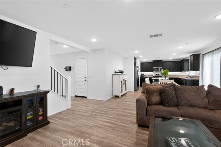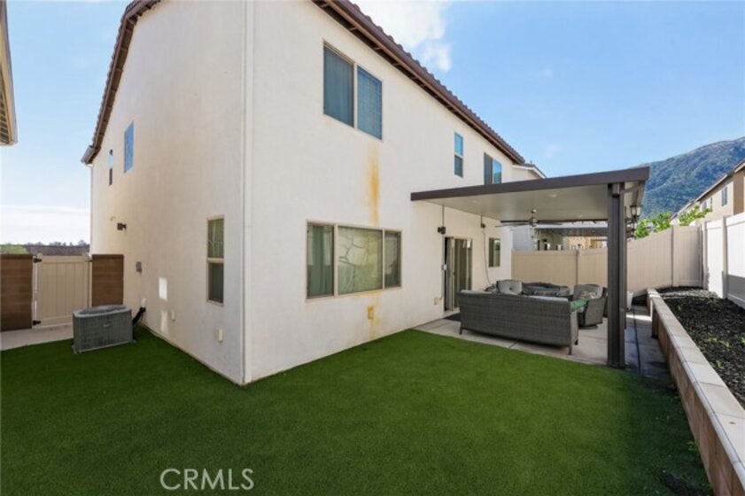 Welcome to a beautifully appointed 4-bedroom, 3-bath home nestled within the sought-after gated Westlake community of Lake Elsinore. Built in 2021 and offering approximately 2,282 square feet, this two-story residence blends modern design, energy efficiency, and everyday functionality. The open-concept main level creates seamless flow between the kitchen, dining, and living areas, ideal for both entertaining and comfortable daily living. The kitchen features granite countertops, stainless steel appliances, and ample cabinetry, while large windows fill the space with natural light. A main level bedroom and bath provide flexibility for guests, multigenerational living, or a home office. Upstairs, the spacious primary suite offers a private retreat with dual walk-in closets, and an en-suite bath complete with dual sinks and large walk-in shower with built in bench. Additional bedrooms are generously sized and thoughtfully positioned for privacy. Energy-conscious features include a leased solar system and a recently serviced HVAC system for added efficiency and comfort. The finished 2-car garage includes EV charging capability. Step outside to a low-maintenance backyard with artificial turf, covered patio, complete with integrated lighting and ceiling fan, perfect for outdoor dining or relaxing evenings. Residents of Westlake enjoy resort-style amenities including a community pool, spa, park, barbecue areas, playground, and gated security. Just minutes from the lake, conveniently near shopping, dining, schools, and major commuter routes, this move-in-ready home offers modern living in one of Lake Elsinore’s most desirable communities. Buyer and buyer’s agent to verify all information including square footage, HOA details, assessments, solar lease terms, and permits.