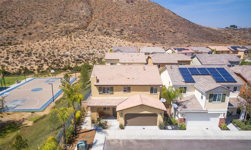 A truly gorgeous home located in the highly desirable neighborhood of Canyon Hills with excellent nearby schools! This beautiful house features bright and airy living room with central heat & air, upgraded epoxy flooring, granite counter tops, stainless steel appliances, entry level den that can be used as a 4th bedroom, upstairs laundry room, and a low maintenance backyard overlooking the Sport Park and mountains. Community amenities include: multiple pools, spa, patio seating, outdoor fireplace, children playground with a splash pad for the hot summer months, BBQ area, tennis courts, and is only steps away from the 18 acre sports park. Short drive to Lake Elsinore, Canyon Lake, I-15 and I-215 freeway and shopping centers.