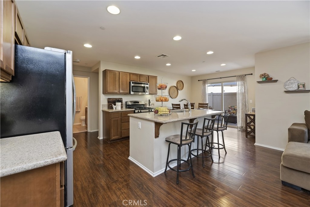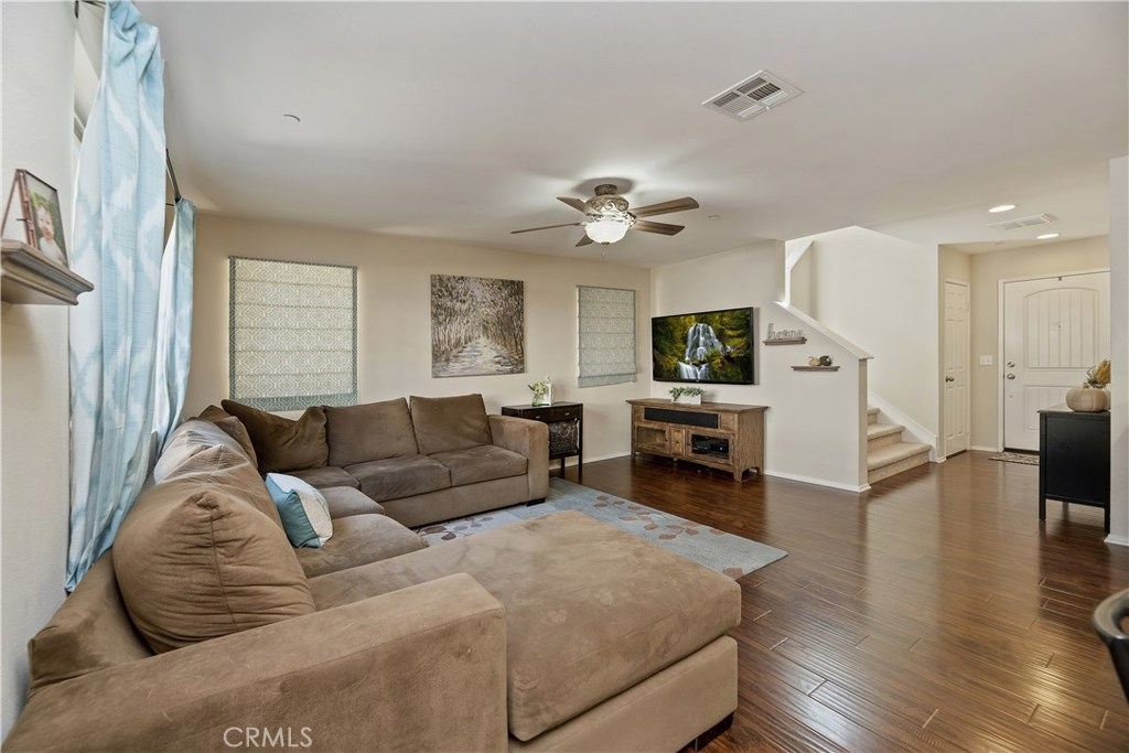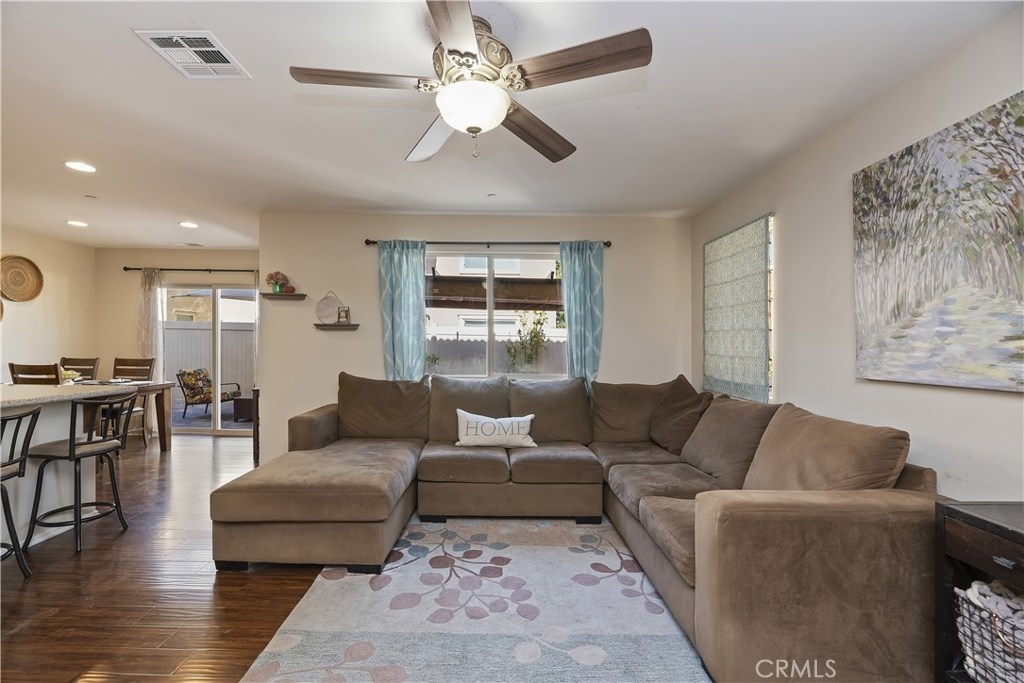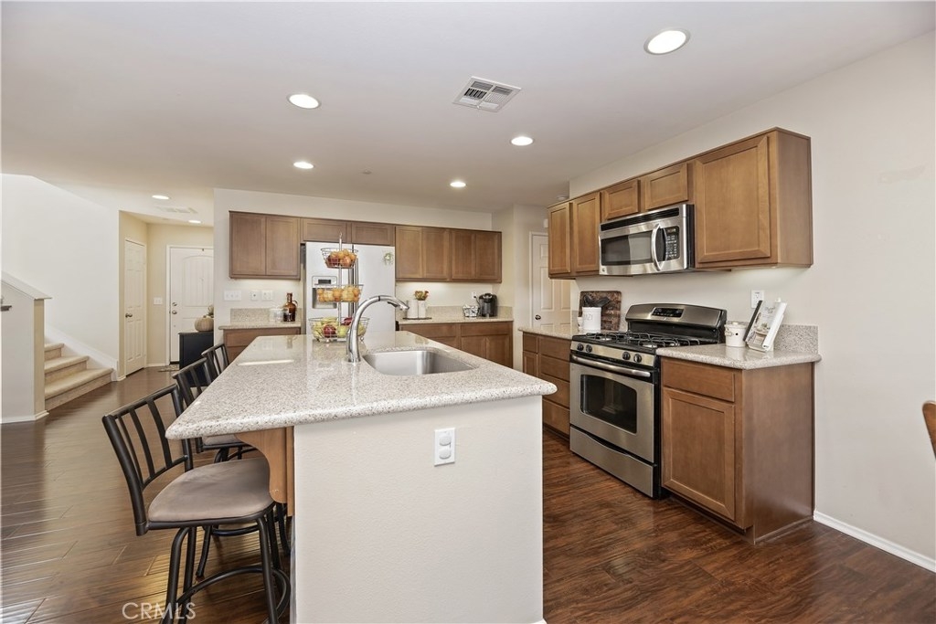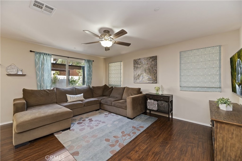 THIS HOUSE IS IT!!! MUST SEE!! This breathtaking airy home is boasting with home owners pride. This 4 bedroom 3 FULL bathroom features upgrades galore! Full hard wood laminate downstairs compliments the cabinets and granite counter tops. The kitchen features stainless steel appliances and immense cabinet space. Enjoy family evenings with the open concept living/dining room. There is also a bonus room and FULL bathroom downstairs, perfect for visiting family or older family members. Upstairs features 3 spacious bedrooms with adorable pinterest worthy touches, do not miss the custom wainscoting accents. The master bedroom has an enormous bathroom with vanity, full walk-in closet, and shower tub combo. The mammoth LAUNDRY room features mega storage and is conveniently located upstairs. The back yard is completed with pavers and planting boxes. Walking distance from the Canyon Hills sports park that has: Dog park, splash pad, 2 play grounds, and an area for every sport. Canyon Hills is a STUNNING master planned community that feature 3 large swimming pools, a large sports park, MANY family activities, and Highly rated SCHOOLS. Conveniently located between the 215 and 15 freeways makes this location a commuters dream. HURRY! THIS AMAZING HOME WILL NOT LAST!!