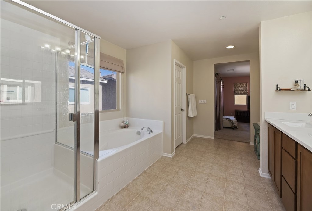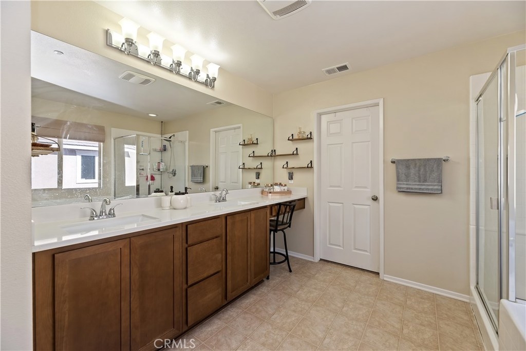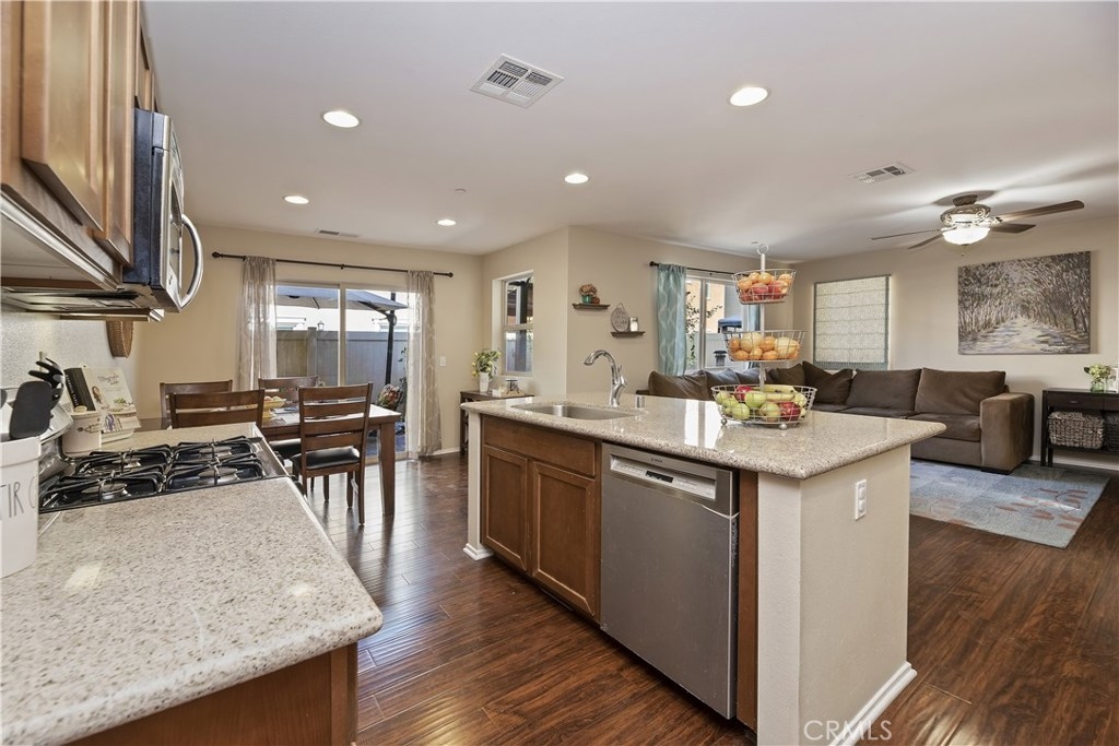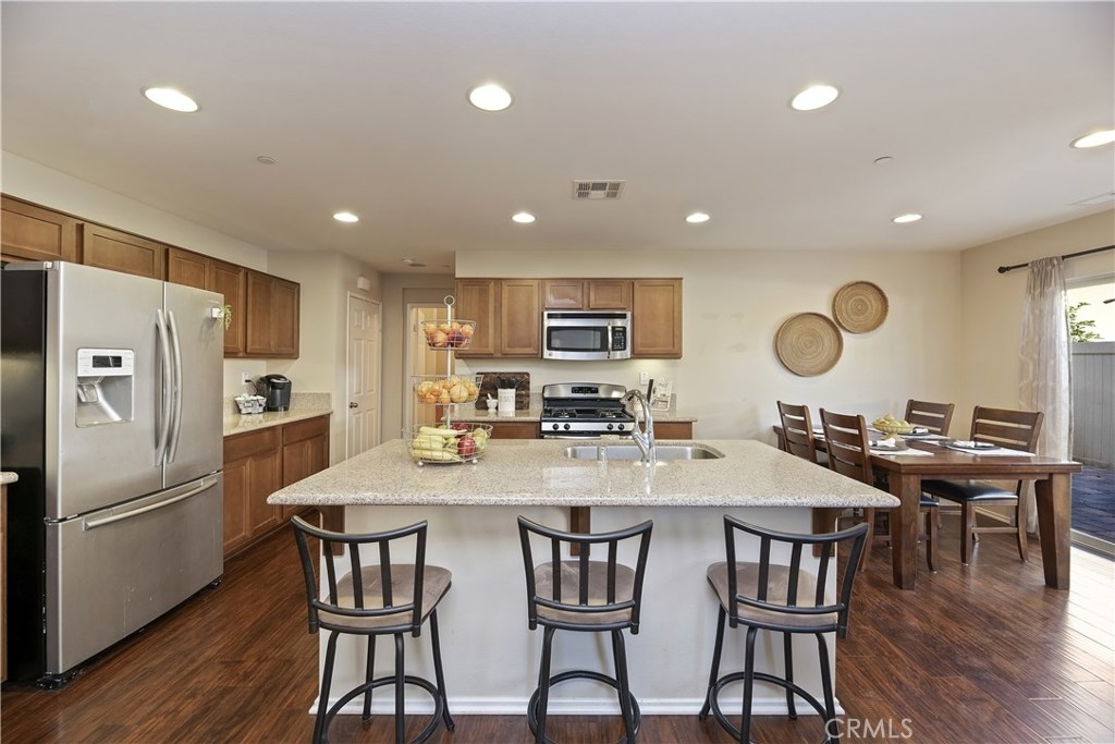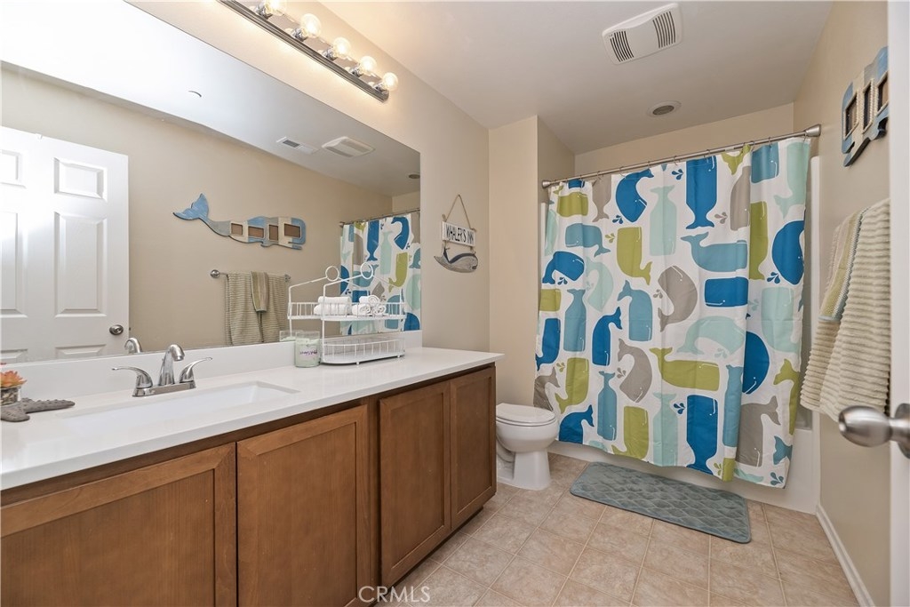 THIS HOUSE IS IT!!! MUST SEE!! This breathtaking airy home is boasting with home owners pride. This 4 bedroom 3 FULL bathroom features upgrades galore! Full hard wood laminate downstairs compliments the cabinets and granite counter tops. The kitchen features stainless steel appliances and immense cabinet space. Enjoy family evenings with the open concept living/dining room. There is also a bonus room and FULL bathroom downstairs, perfect for visiting family or older family members. Upstairs features 3 spacious bedrooms with adorable pinterest worthy touches, do not miss the custom wainscoting accents. The master bedroom has an enormous bathroom with vanity, full walk-in closet, and shower tub combo. The mammoth LAUNDRY room features mega storage and is conveniently located upstairs. The back yard is completed with pavers and planting boxes. Walking distance from the Canyon Hills sports park that has: Dog park, splash pad, 2 play grounds, and an area for every sport. Canyon Hills is a STUNNING master planned community that feature 3 large swimming pools, a large sports park, MANY family activities, and Highly rated SCHOOLS. Conveniently located between the 215 and 15 freeways makes this location a commuters dream. HURRY! THIS AMAZING HOME WILL NOT LAST!!