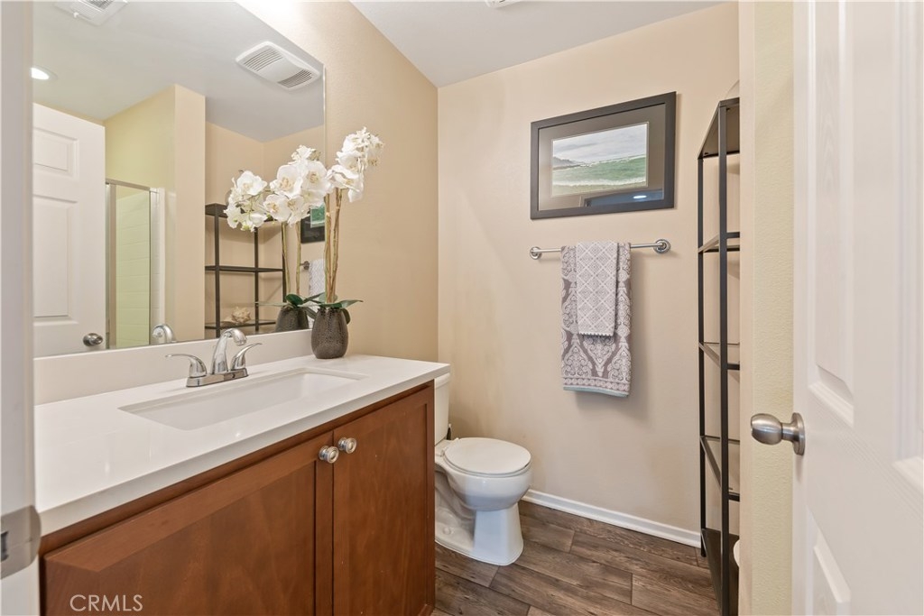 Wonderful 4 bedroom, 3 bath home at the end of a small street with 1922 sf of living space in Canyon Hills! New flooring throughout. You enter the home into a spacious area that takes you right into the great room that opens up to the kitchen and dining area. There is a bedroom and bathroom nooked behind the kitchen. Dark coffee colored cabinets with granite counters that compliment the sytle. Lots of counter space and an island that would be great for your gatherings of famiy and friends. Stainless steel appliances. The kitchen sink is deep and the size of a farm sink. The stairwell is wide with lots of windows that add natural light upstairs and downstairs. Master bedrrom is tranquil with a beautiful bath onsuite. Dual sinks with lots of under cabinet storaage and lots of counter space. The shower is oversized with room for a bench or chair next to it with a spacious walk in closet. Two additional bedrooms upstiars with another spacious bathroom with dual sinks. The laundry room is by far one of the largest out there with a whole wall of shelving and plenty of room for your laundry baskets and pet beds. Located in the beautiful community of Canyon Hills these homes show as condominums however they are stand alone single family residences. Enjoy the coummunity pools, vast park and dog park. Easy access to freeway and shopping. This one won't last!