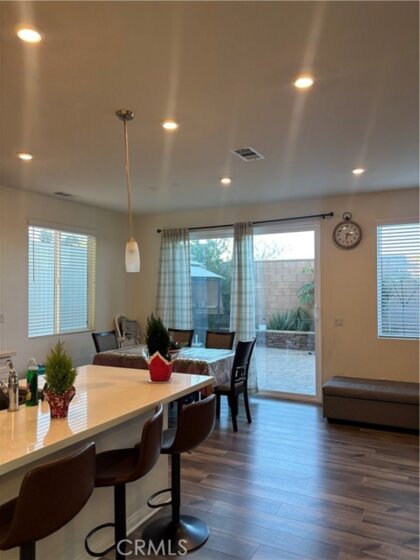 Four-bedroom, three-bathroom single-family residence in Lake Elsinore, built in 2022, offering approximately 2,004 square feet of living space. The two-story floor plan includes a downstairs bedroom and full bathroom. The main level features an open layout connecting the living, dining, and kitchen areas. Interior features include contemporary finishes, a functional kitchen design, and ample natural light. The property includes solar panels, an attached two-car garage equipped with an electric vehicle charging outlet, and an indoor laundry room with washer and dryer. The property is located near major roadways, retail centers, dining options, and local amenities.