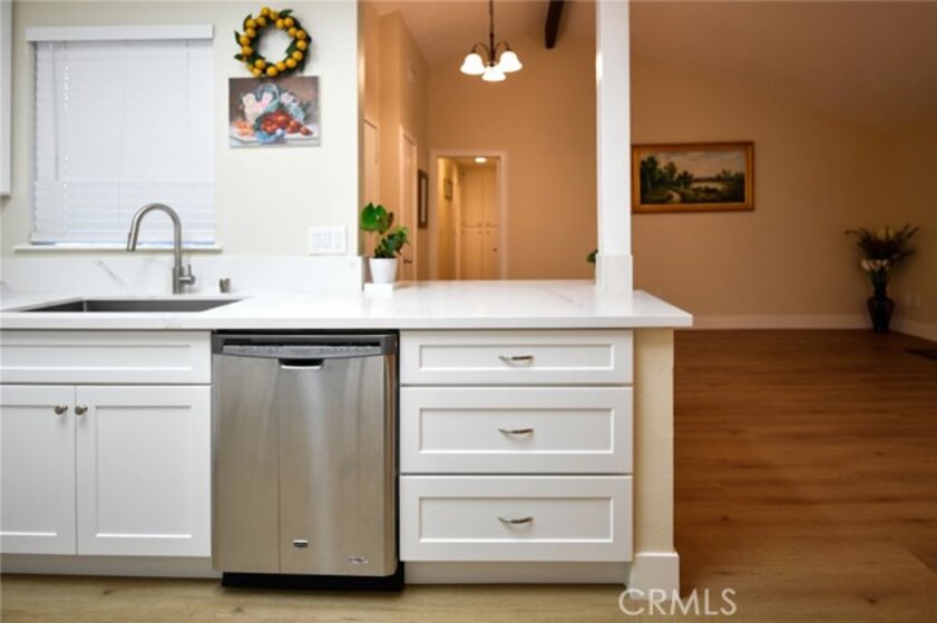 TURNKEY REMODELED Lakeside CONDO. Welcome to this beautifully remodeled 2 bed, 1 bath single-level condominium in the highly desirable Parkview Villas community. Offering 1,050 sqft of bright and open living space, this unit is ready for immediate occupancy. The interior boasts a spacious living room with a cozy fireplace and a high ceiling. Remodeled & Designed kitchen includes new cabinets, quartz countertops, faucet, sink, garbage disposal and dishwasher. Kitchen features a bay window. The bathroom has also been upgraded with a new vanity, faucet, sink, medicine cabinet, mirror, shower door and toilet. Easy to maintain laminate/vinyl flooring runs throughout the main living areas. Brand new ceiling fans in both bedrooms. Master bedroom with 2 closets and a sliding door leading to the backyard. Step outside to your private, fully enclosed backyard area with newly installed vinyl fence and artificial turf for clean and easy maintenance. Enjoy the convenience of an inside laundry room and the comfort of central A/C. Parking includes a 1-car attached garage plus one additional assigned parking space. Excellent location—walking distance to elementary school and park. Conveniently located next to supermarkets and easy access to I-15 commuters.